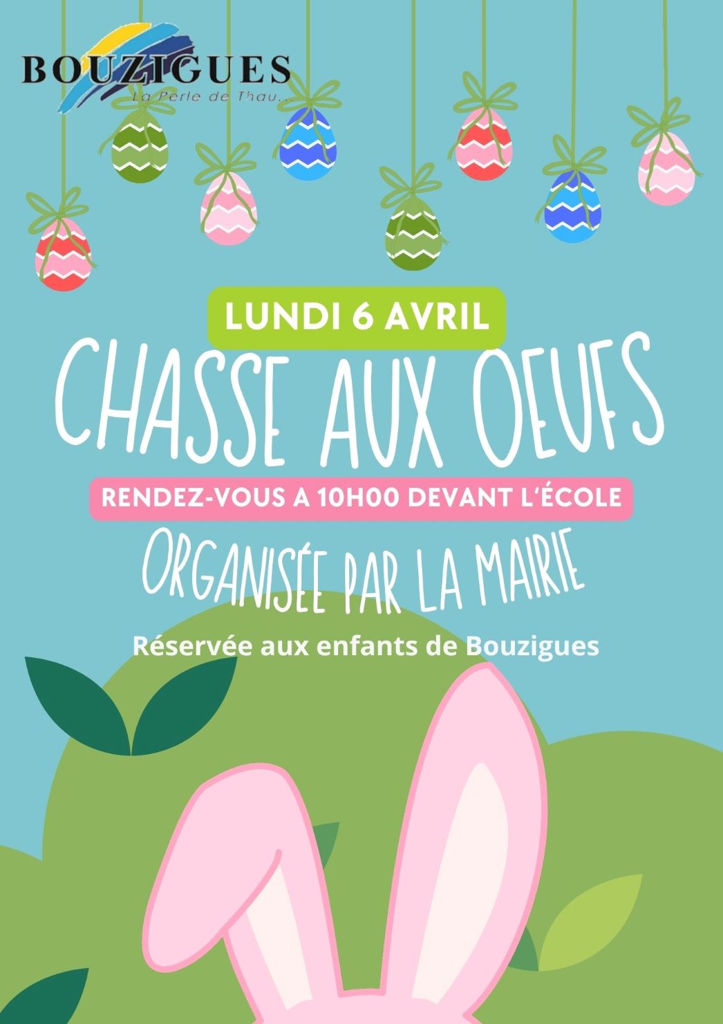 La mairie est heureuse de convier les enfants de Bouzigues à la traditionnelle Chasse au œufs.