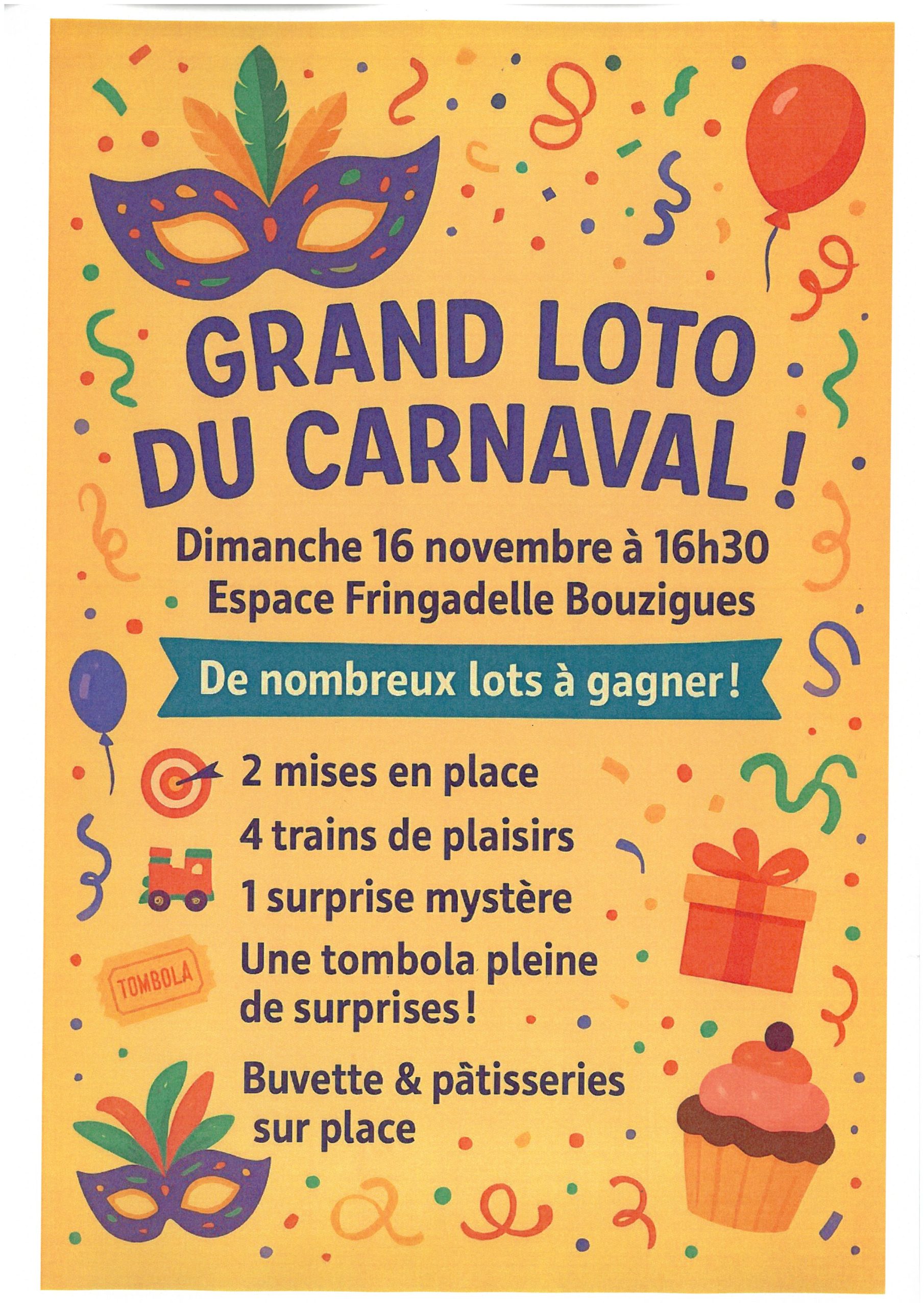 Voir l'image agrandie LOTO DU CARNAVAL LOTO DU CARNAVAL 80 80 people viewed this event. S’inscrire à l’évènement Pour s’inscrire à cet évènement, Veuillez vous rendre à l’URL suivante : → Date et heure 16-11-2025 à 16:30 à 16-11-2025 à 20:00 Lieu FOYER RURAL Types d’évènements Loto Partager avec des amis Facebook Twitter Linkedin Xing Pinterest Communication_bouzigues2025-11-14T16:22:29+01:00 Partagez cet article! FacebookXLinkedInWhatsAppTumblrPinterestEmail